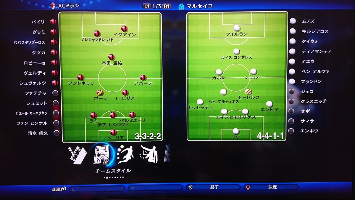 改めてみるとかなり攻撃的なフォーメーションですね。トッティはお休みか?