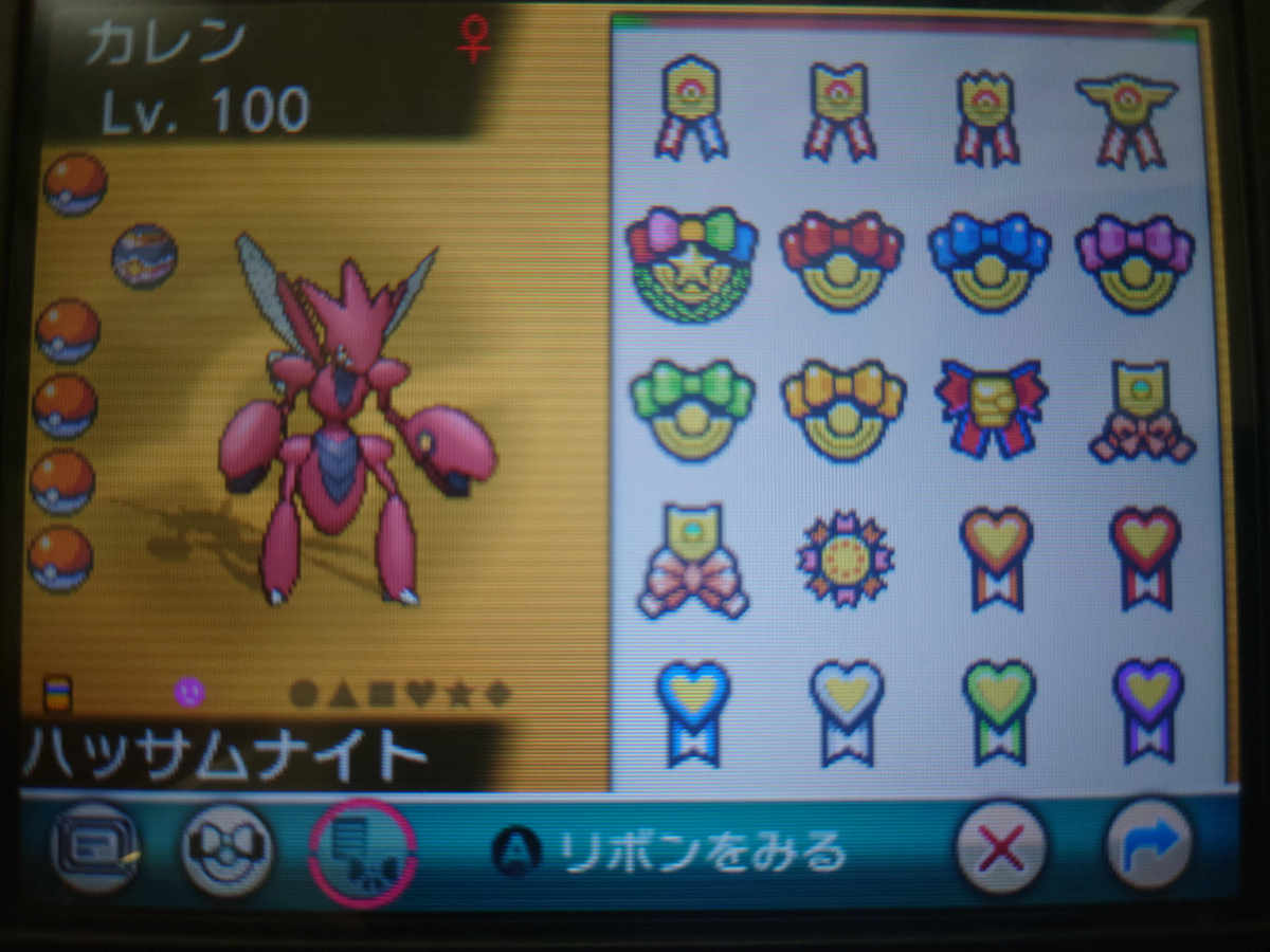 XYで殿堂入りすることで獲得。Xをはじめからクリアしなければならなかったので、最初の殿堂入りの際に、サーナイトとハッサムをパーティに加えてクリアしました。
